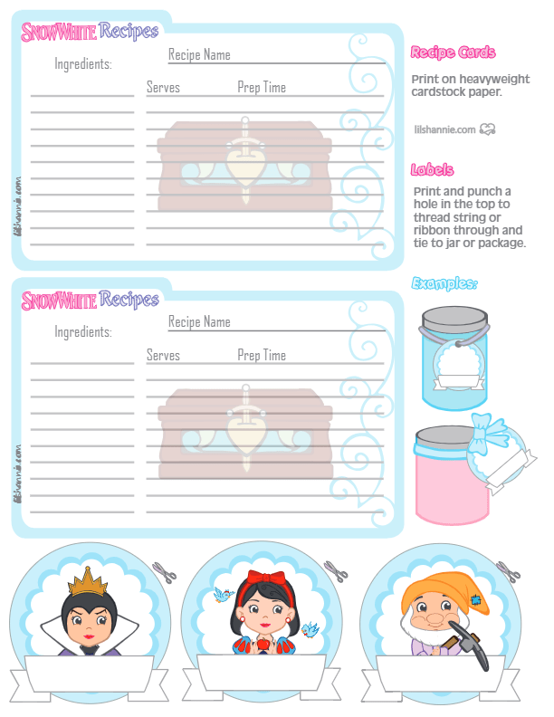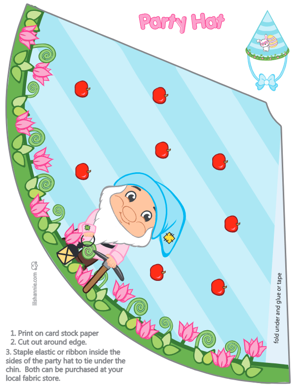 It’s Snow White and the 7 Dwarves and they are here to help you celebrate!  Lil Shannie has all the printable Snow White party supplies you need to bring your party together.  Look for free party hats, free party favors and more.  Snow White and her friends are waiting!  It’s time for you to start printing! I hope you enjoy!