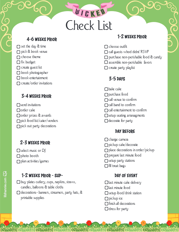 Home » Cartoon Characters » Wicked » Wicked Party Check List